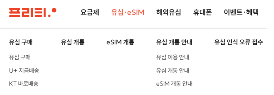 1. 상단 메뉴에서 ‘유심개통’ 또는 ‘가입하기’ 클릭