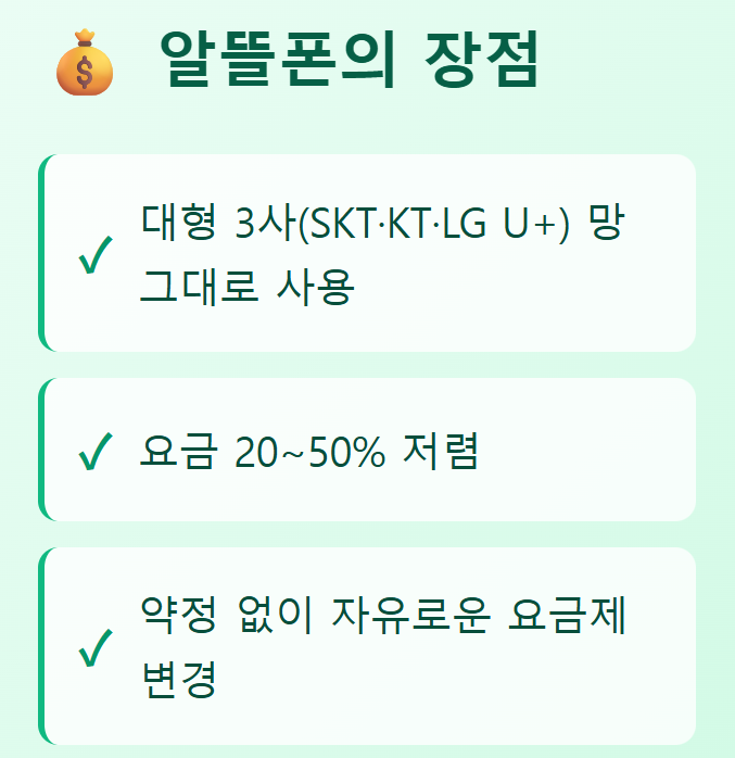 SKT·KT·LG U+ 대형 3사의 망을 그대로 사용 → 통화 품질 동일