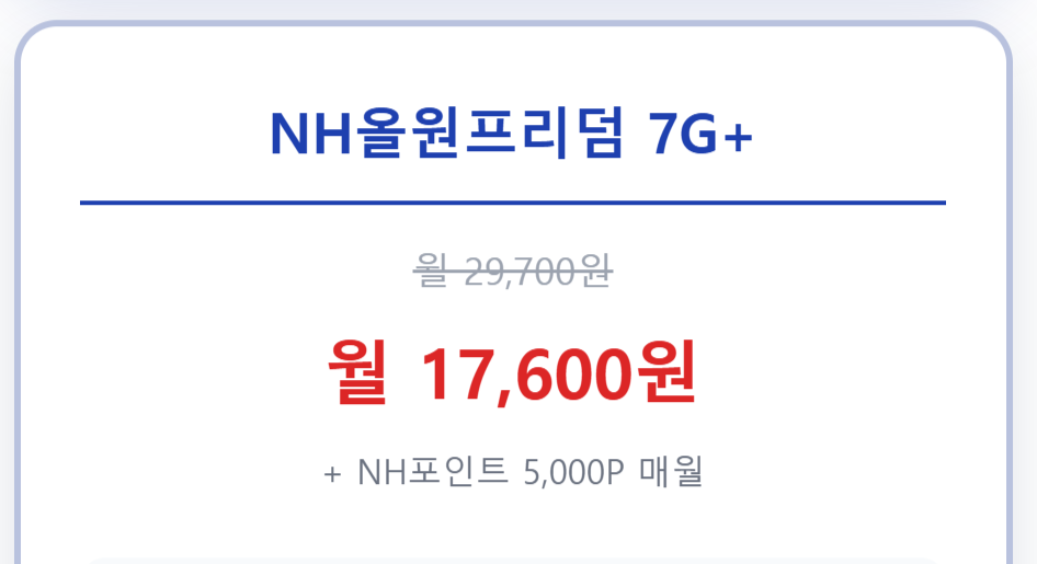 - NH올원프리덤 7G+: 넉넉한 데이터 + 포인트 적립