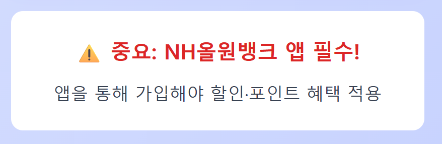 NH올원뱅크를 통해 가입해야 할인·포인트 혜택이 적용됩니다.