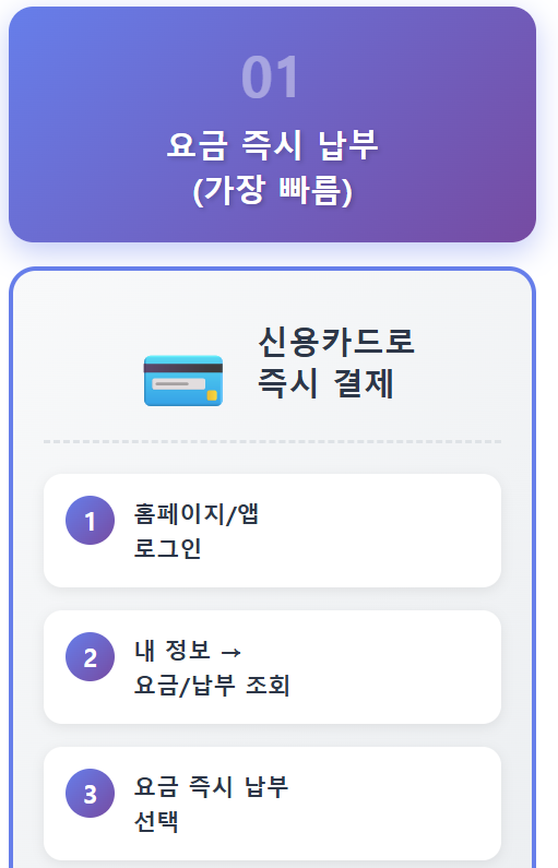 ▶ 방법 1️⃣ 요금 즉시 납부 (가장 빠른 방법)