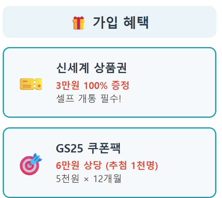 - 사은품 : 5천원X12개월 혜택 지급 (추첨 1천명) (GS25 상품권/CU/다이소 中 택 1)