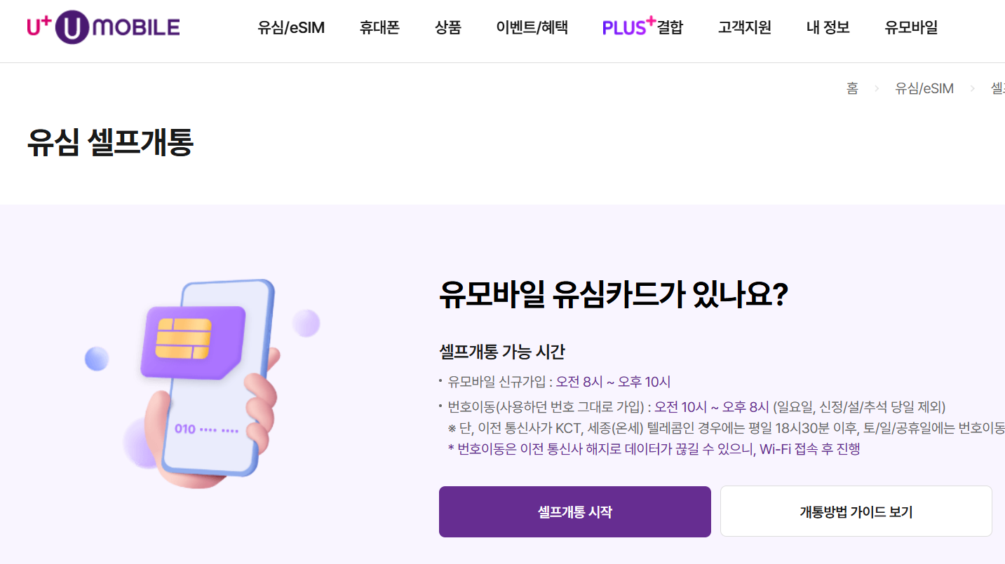✔️ 유모바일 유심 셀프 개통 방법